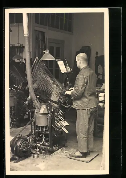 Foto-AK Fabrikarbeiter an einer Graviermaschine
