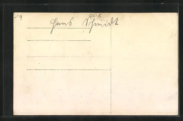 Personenbezogene Daten auf der Rückseite der Karte wurden durch blauen Textmarker unkenntlich gemacht. Die blauen Stellen sind auf die Vorderseite durchgeweicht und wirken sich negativ auf das Postkartenfoto aus