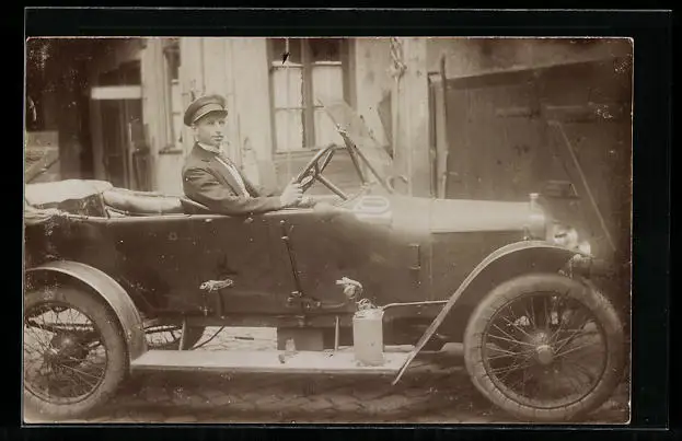 Foto-AK Fahrer in seinem Auto in einer Einfahrt, Cabriolet