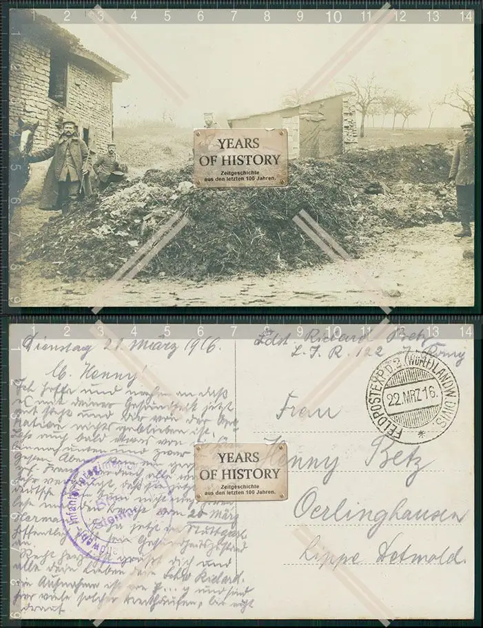 Foto AK Feldpost 1. WK LIR Infanterie Regiment 122 Frankreich zerstört M2023-02-16-033Foto AK Feldpost 1. WK LIR Infanterie Regiment 122 Frankreich zerstört