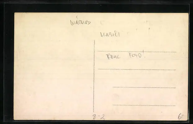 Personenbezogene Daten auf der Rückseite der Karte wurden durch blauen Textmarker unkenntlich gemacht. Die blauen Stellen sind auf die Vorderseite durchgeweicht und wirken sich negativ auf das Postkartenfoto aus