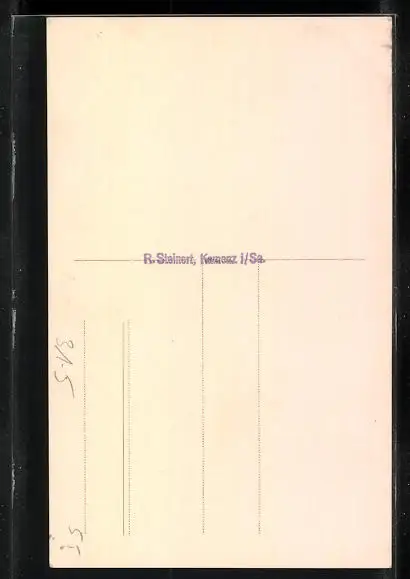 Personenbezogene Daten auf der Rückseite der Karte wurden durch blauen Textmarker unkenntlich gemacht. Die blauen Stellen sind auf die Vorderseite durchgeweicht und wirken sich negativ auf das Postkartenfoto aus