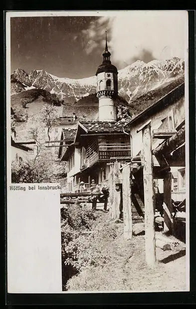 Foto-AK Fritz Gratl: Innsbruck, Ortspartie mit Uhrenturm