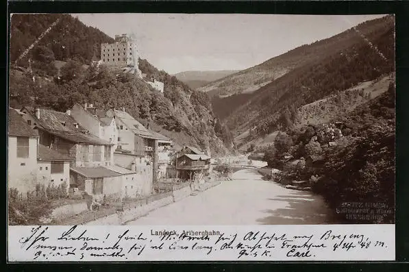 Foto-AK Fritz Gratl: Landeck, Arlbergbahn, Ortspartie