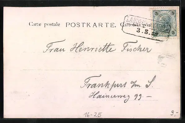 alte Ansichtskarte, gelaufen, minimaler Einriss oben mittig, Albumspuren, guter Zustand