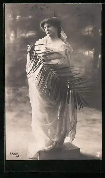 Foto-AK GL Co: Fräulein im Kleid mit einem Palmwedel