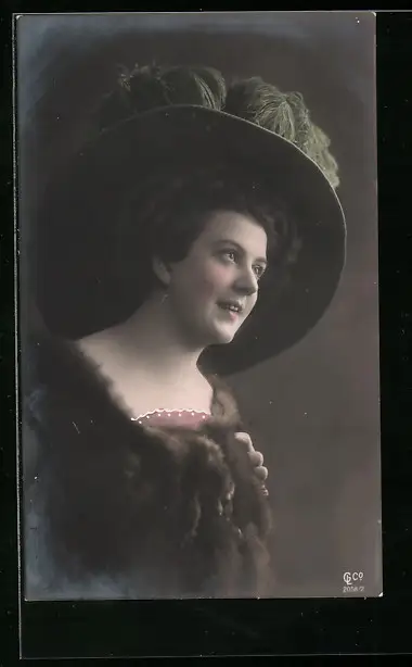 Foto-AK GL Co: Junge Dame mit opulentem Hut