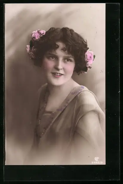 Foto-AK GL Co: Junge Frau mit Blumen im Haar
