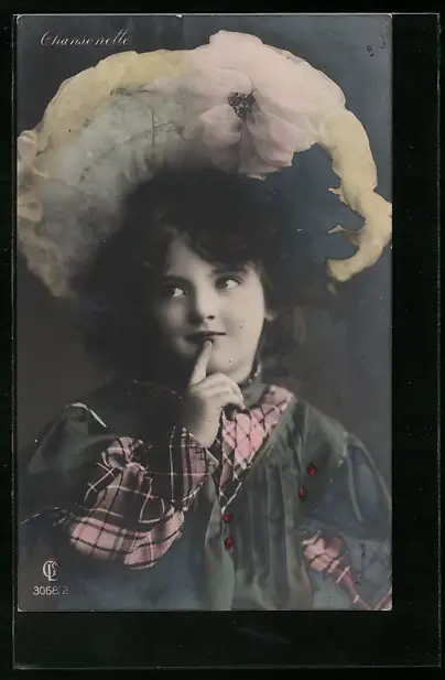 Foto-AK GL Co: Kleines Mädchen trägt Mutters Hut