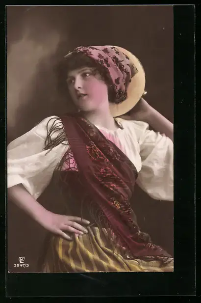 Foto-AK GL Co: Mädchen in Tracht mit Tamburin