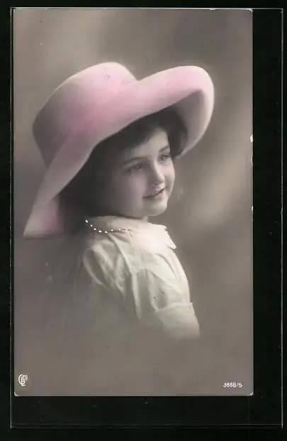 Foto-AK GL Co: Mädchen mit rosafarbenem Hut