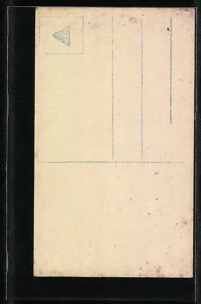 Personenbezogene Daten auf der Rückseite der Karte wurden durch blauen Textmarker unkenntlich gemacht. Die blauen Stellen sind auf die Vorderseite durchgeweicht und wirken sich negativ auf das Postkartenfoto aus