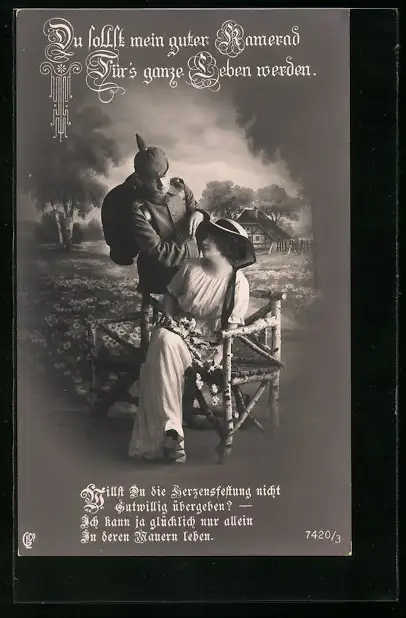 Foto-AK GL Co: Soldat verabschiedet sich von seiner Liebsten