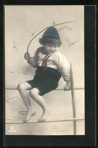 Foto-AK GL Co: kleines Kind auf einem Zaun