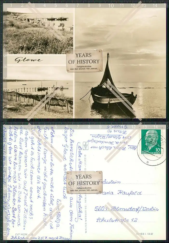 Foto AK Glowe Rügen Strandpartie Boot Kleiner Steg Strandkörbe DDR M2024-01-04-152Foto AK Glowe Rügen Strandpartie Boot Kleiner Steg Strandkörbe DDR