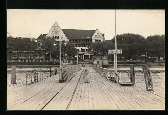 Foto-AK Glücksburg, Uferpartie mit Steg