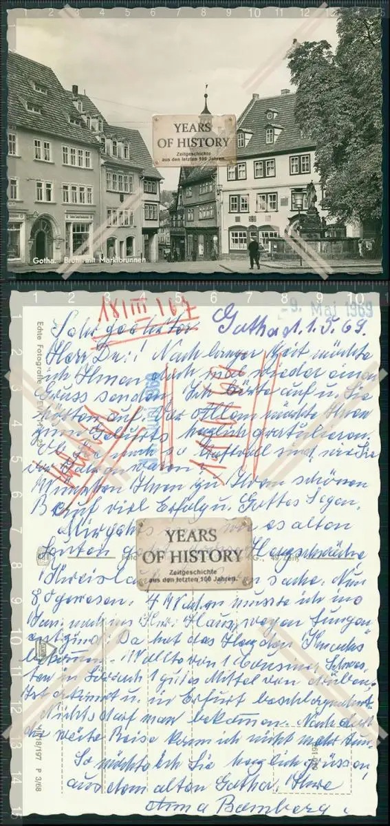 Foto AK Gotha Thüringen Brühl mit Marktbrunnen