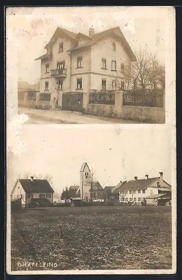 Foto-AK Gräfelfing, Strassenpartie mit Gebäudeansicht, Ortspartie