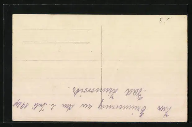 Personenbezogene Daten auf der Rückseite der Karte wurden durch blauen Textmarker unkenntlich gemacht. Die blauen Stellen sind auf die Vorderseite durchgeweicht und wirken sich negativ auf das Postkartenfoto aus
