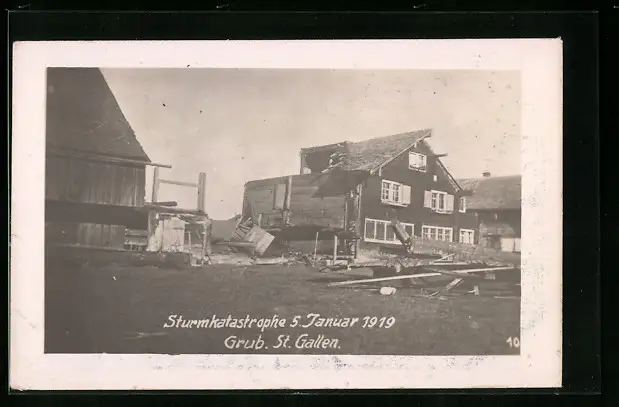 Foto-AK Grub, Sturmkatastrophe 5. Januar 1919, Zerstörtes Haus