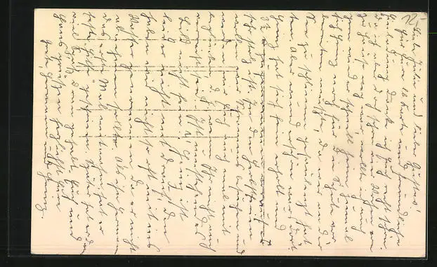 Personenbezogene Daten auf der Rückseite der Karte wurden durch blauen Textmarker unkenntlich gemacht. Die blauen Stellen sind auf die Vorderseite durchgeweicht und wirken sich negativ auf das Postkartenfoto aus