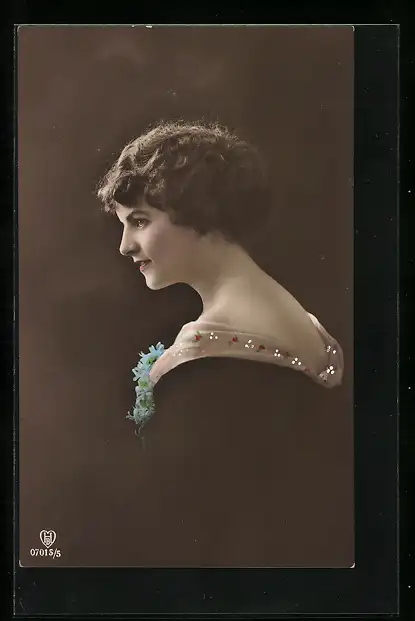Foto-AK HB: 07015 /5, Junge Frau in einem schulterfreien Kleid