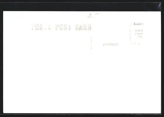 Personenbezogene Daten auf der Rückseite der Karte wurden durch blauen Textmarker unkenntlich gemacht. Die blauen Stellen sind auf die Vorderseite durchgeweicht und wirken sich negativ auf das Postkartenfoto aus