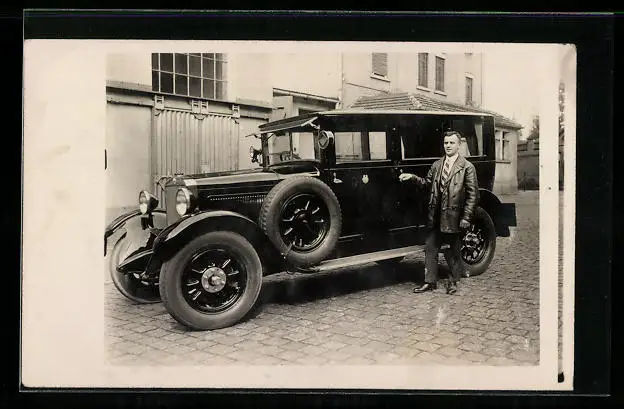 Foto-AK Herr mit Krawatte neben seinem Auto