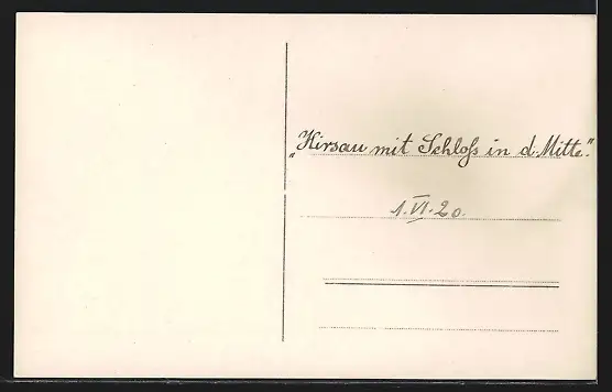 Personenbezogene Daten auf der Rückseite der Karte wurden durch blauen Textmarker unkenntlich gemacht. Die blauen Stellen sind auf die Vorderseite durchgeweicht und wirken sich negativ auf das Postkartenfoto aus
