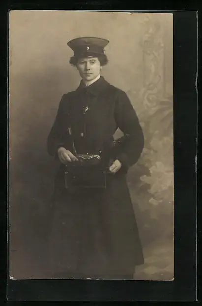 Foto-AK Hübsche Strassenbahn oder Eisenbahn-Schaffnerin