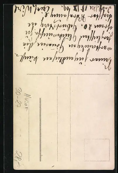 Personenbezogene Daten auf der Rückseite der Karte wurden durch blauen Textmarker unkenntlich gemacht. Die blauen Stellen sind auf die Vorderseite durchgeweicht und wirken sich negativ auf das Postkartenfoto aus