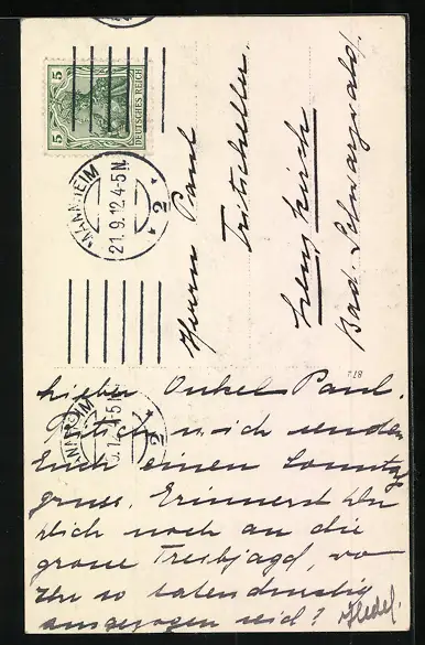 alte Ansichtskarte, gelaufen 1912, guter Zustand
