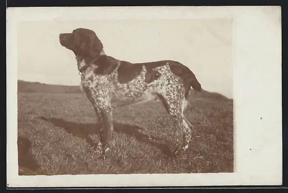 Foto-AK Jagdhund auf einer Wiese, Seitenportrait