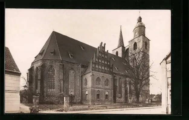 Foto-AK Jüterbog, Strassenpartie mit Nikolaikirche