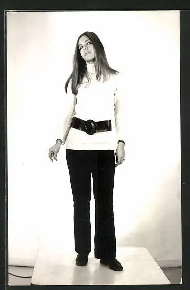 Foto-AK Junge Dame im weissen Pullover bei einer Modenschau