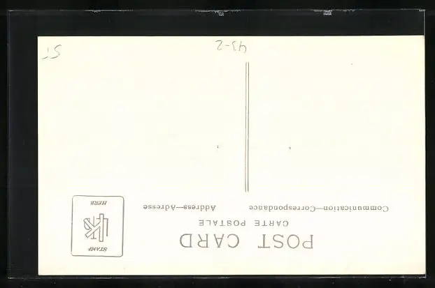 Personenbezogene Daten auf der Rückseite der Karte wurden durch blauen Textmarker unkenntlich gemacht. Die blauen Stellen sind auf die Vorderseite durchgeweicht und wirken sich negativ auf das Postkartenfoto aus