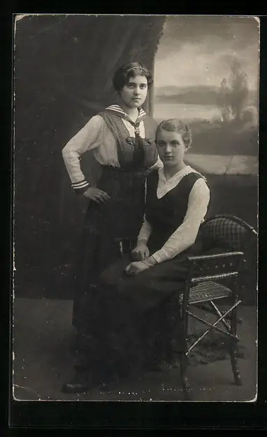Foto-AK Junge Damen in Kleidern in Studiokulisse