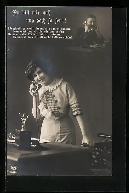 Foto-AK Junge Frau am Telefon mit ihrem Mann