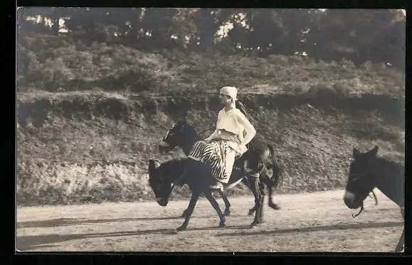 Foto-AK Junge Frau beim Ritt auf einem Esel