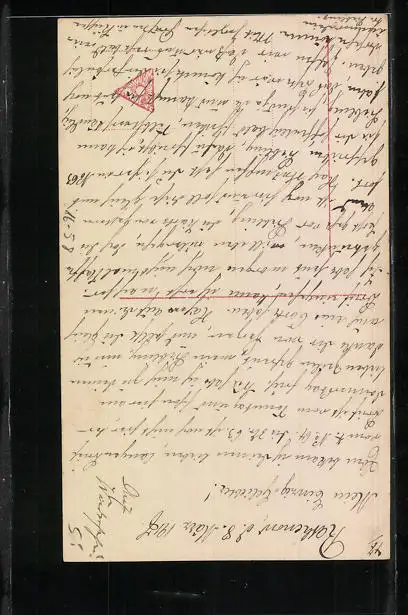 Personenbezogene Daten auf der Rückseite der Karte wurden durch blauen Textmarker unkenntlich gemacht. Die blauen Stellen sind auf die Vorderseite durchgeweicht und wirken sich negativ auf das Postkartenfoto aus