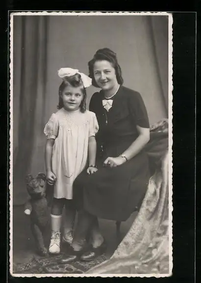 Foto-AK Junge Frau und Mädchen mit Teddy
