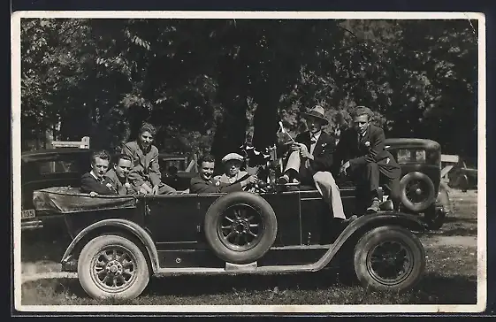 Foto-AK Junge Männer in einem Fiat-Auto mit offenem Verdeck