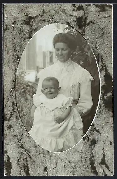 Foto-AK Junge Mutter mit ihrem kleinen Kind, Passepartout