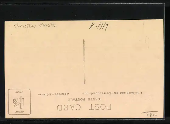 Personenbezogene Daten auf der Rückseite der Karte wurden durch blauen Textmarker unkenntlich gemacht. Die blauen Stellen sind auf die Vorderseite durchgeweicht und wirken sich negativ auf das Postkartenfoto aus
