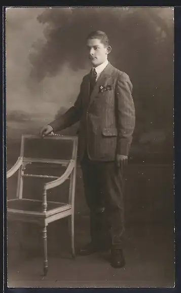 Foto-AK Junger Herr im Anzug in einer Studiokulisse