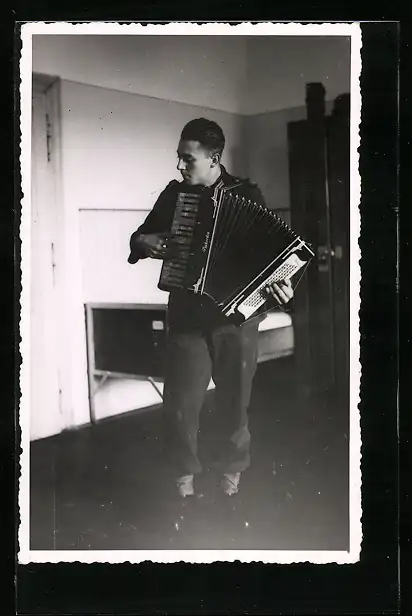 Foto-AK Junger Mann spielt Akkordeon