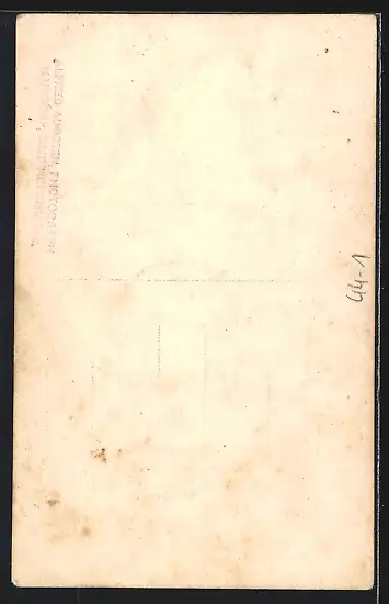 Personenbezogene Daten auf der Rückseite der Karte wurden durch blauen Textmarker unkenntlich gemacht. Die blauen Stellen sind auf die Vorderseite durchgeweicht und wirken sich negativ auf das Postkartenfoto aus