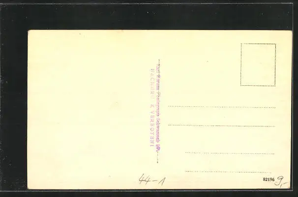 Personenbezogene Daten auf der Rückseite der Karte wurden durch blauen Textmarker unkenntlich gemacht. Die blauen Stellen sind auf die Vorderseite durchgeweicht und wirken sich negativ auf das Postkartenfoto aus