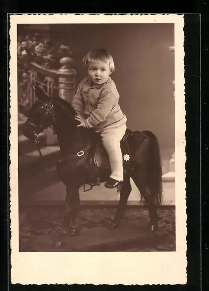Foto-AK Kind auf einem Schaukelpferd