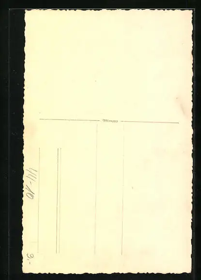 Personenbezogene Daten auf der Rückseite der Karte wurden durch blauen Textmarker unkenntlich gemacht. Die blauen Stellen sind auf die Vorderseite durchgeweicht und wirken sich negativ auf das Postkartenfoto aus